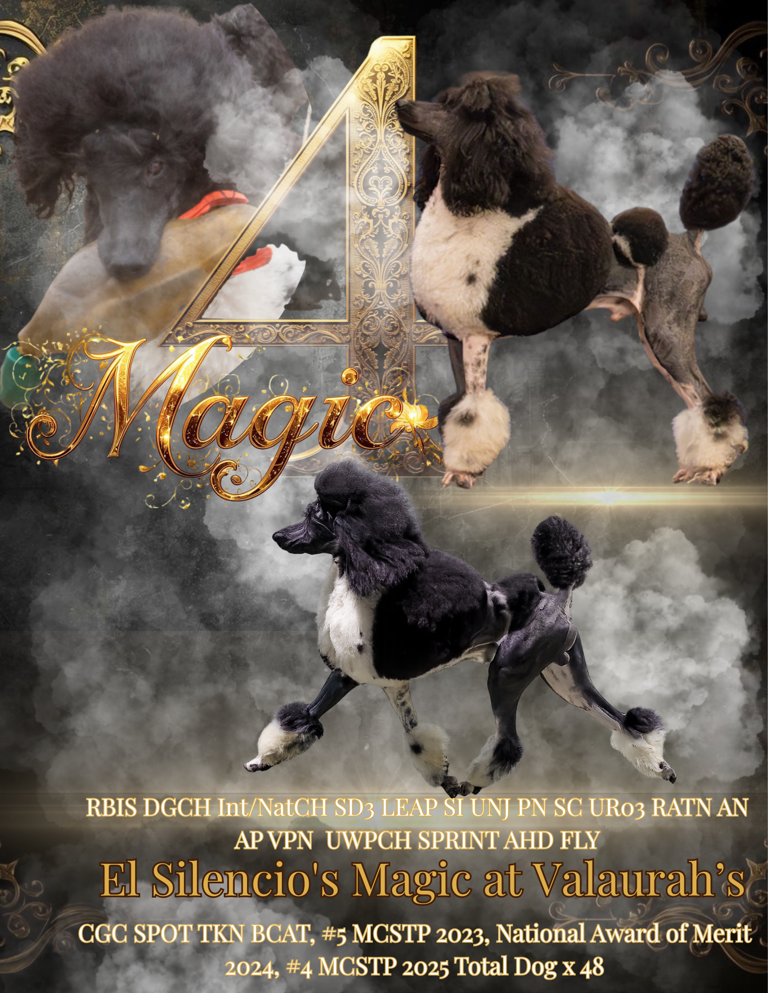 Our commitment to "The Total Dog" philosophy means we not only compete in conformation but also engage our poodles in a range of sports like Precision Coursing, Nosework, Lure Coursing, Upland Hunting, Shed Hunting, and Weight Pull. We believe a well-rounded dog is a happy dog, and our diverse activities ensure our poodles are just that.